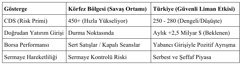 Bölgesel entegrasyonun sıklıkla konuşulmaya başlandığı günümüzde, bölge sermayesinin yüzünü kültürel bağlarının güçlü olduğu, askeri caydırıcılığı kanıtlanmış ve ekonomik reformlarını tamamlamış olan Türkiye’ye dönmesi en gerçekçi tercih olacaktır. Körfez sermayesi (yaklaşık 1,5 trilyon dolarlık özel fon ve varlık fonları), riskten kaçma eğilimiyle ($flight\ to\ quality$) kendine yeni ve güvenli limanlar arıyor. Bu durum, Türkiye'nin 'Bölgesel Hub' olma iddiasını 'Küresel Güvenli Liman' seviyesine taşıyacaktır.