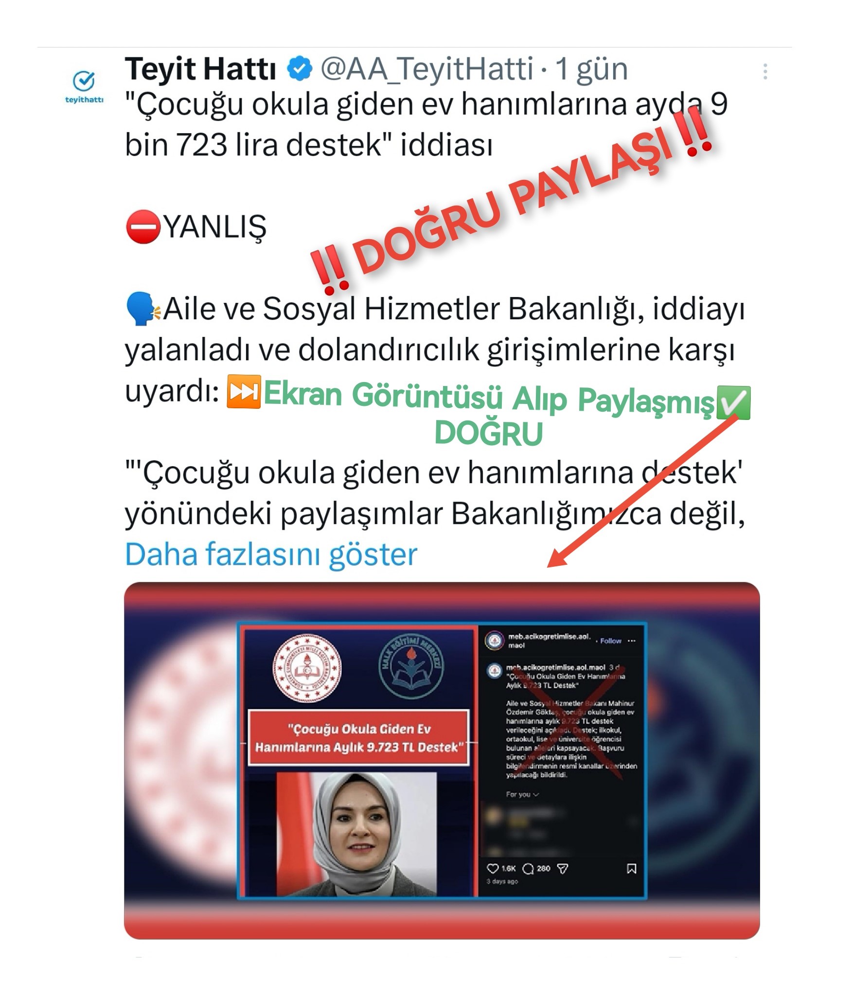 Hatalı paylaşım. Link vermiş, X paylaşımını olduğu gibi paylaşmış...