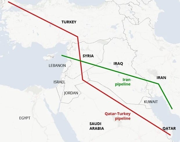 2009 öncesinde, “Katar-Türkiye Doğalgaz Boru Hattı” projesi, en büyük doğalgaz rezervine sahip kaynak ülke Katar'ın (ne tesadüfse 18 Mart’ta saldırıya uğramış bulunan) Ras Laffan bölgesinden başlayarak önce Suudi Arabistan, Ürdün ve Suriye'den geçerek Ankara'ya ulaşacak ve buradan Nabucco hattı ile birleşerek Avrupa'ya ulaşacak olan bir doğalgaz boru hattı projesi olarak planlanmıştı. Bununla, Avrupa'ya Rus gazına alternatif güvenli bir doğalgaz tedariki hedefleniyordu.