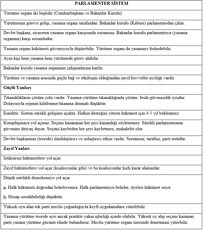 Parlamenter Sistem ve Eleştirileri