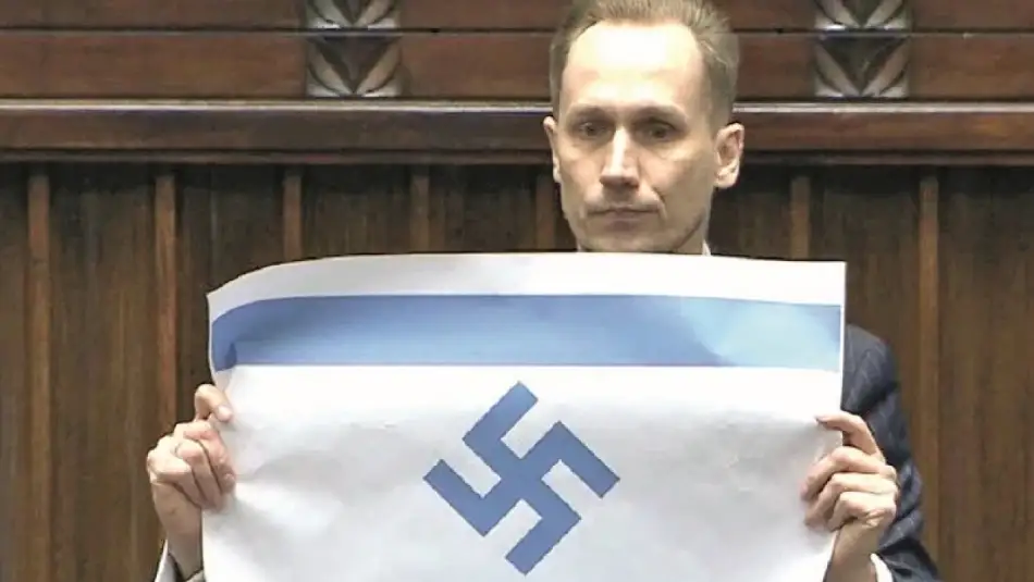 Polonya milletvekili Konrad Berkowicz, parlamentoda yaptığı konuşma sırasında gamalı haç sembolü içeren İsrail bayrağı açarak İsrail’i Nazi Almanyası’na benzetti. Açılan bayrak ve ifadeler mecliste tartışmalara neden oldu.